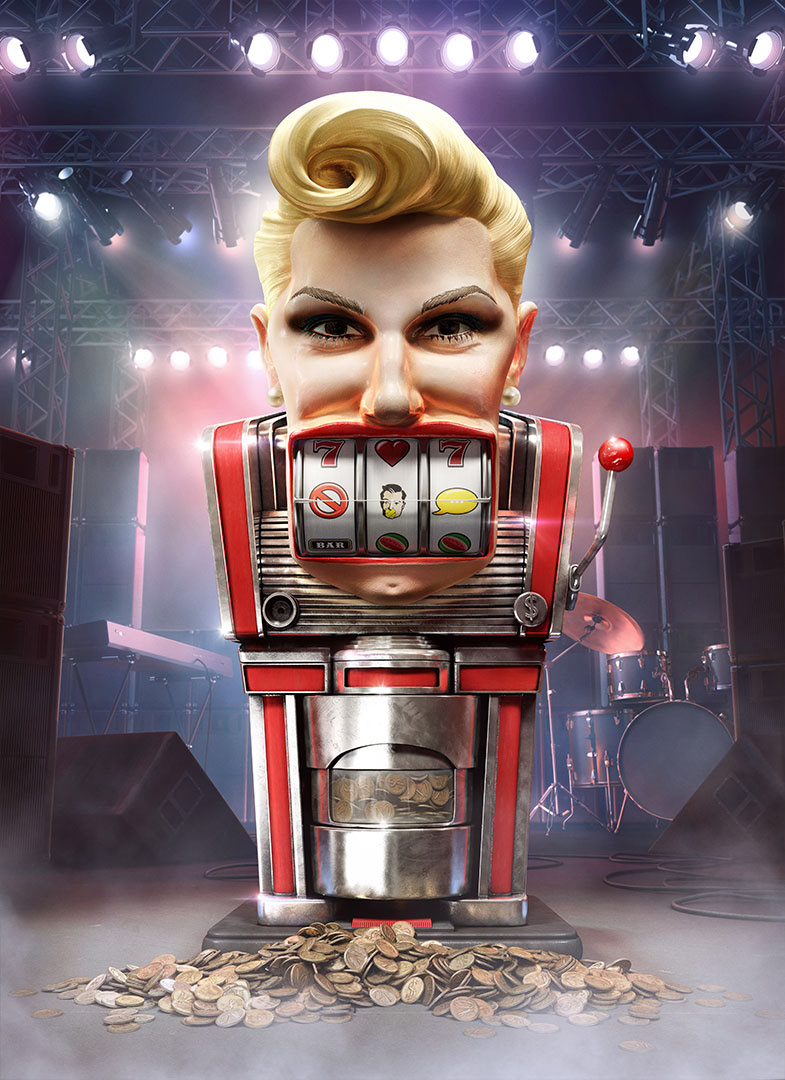 Created to promote the 'Rock in Rio' music festival '2015 Las Vegas' edition. Did you spot the hidden clues to the identity of each machine?