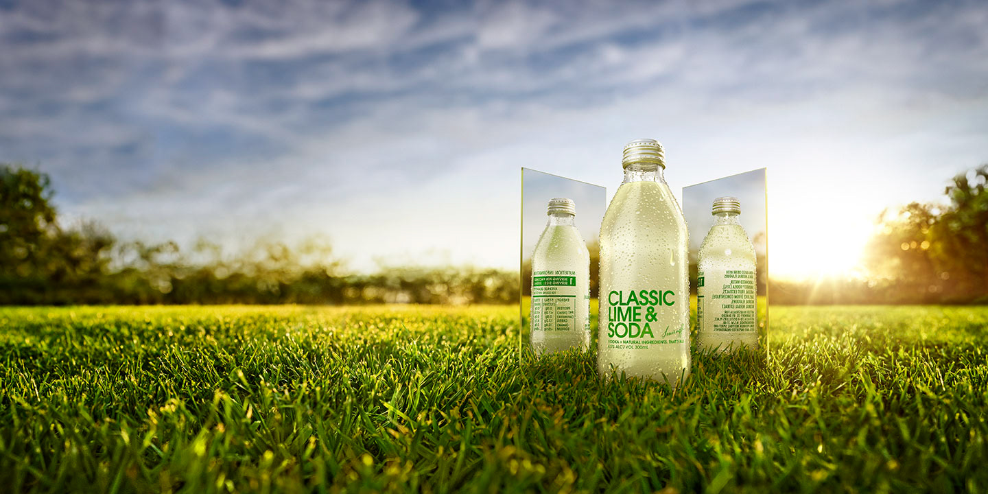 "Nothing to Hide" Bottles and mirrors were created in CG, then comped into the background plate.